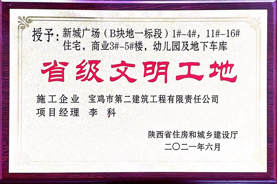 2021年省級文明工地(新城廣場(B塊地一標段))