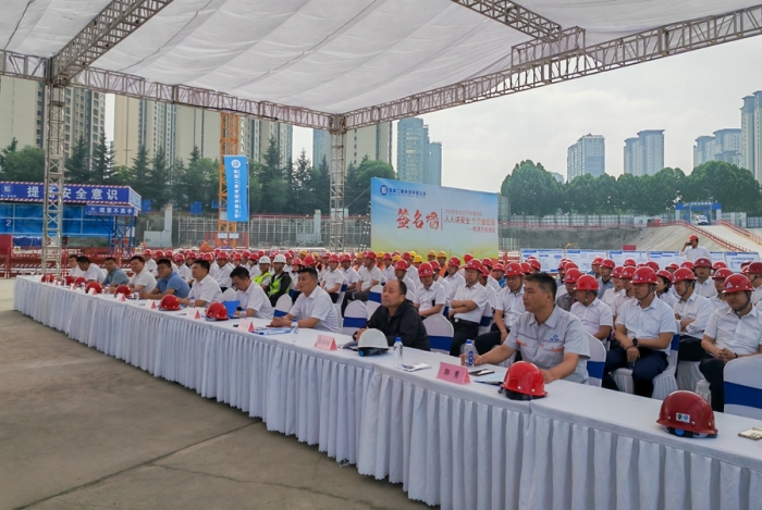 集團(tuán)公司黨委副書記、總經(jīng)理楊江平,副總經(jīng)理、總會計師嚴(yán)海軍,副總經(jīng)理申小龍出席儀式。集團(tuán)公司總部相關(guān)部門,寶雞片區(qū)各項目部負(fù)責(zé)人、專職安全管理人員及現(xiàn)場施工人員共計150余人參加了本次活動,儀式由副總工程師、工程管理部經(jīng)理郭為群主持。