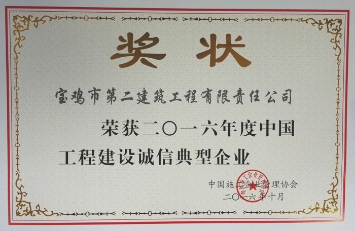 2016年中國(guó)工程建設(shè)誠(chéng)信典型企業(yè)