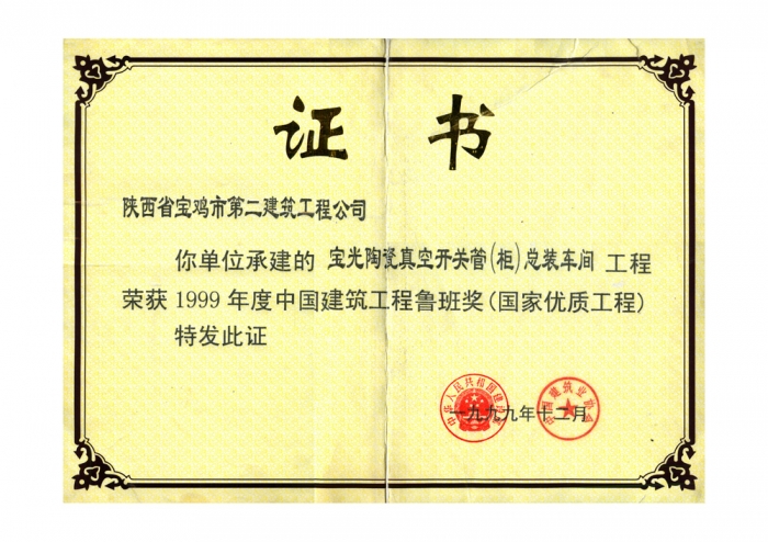 1999年魯班獎(寶光陶瓷真空開關柜)